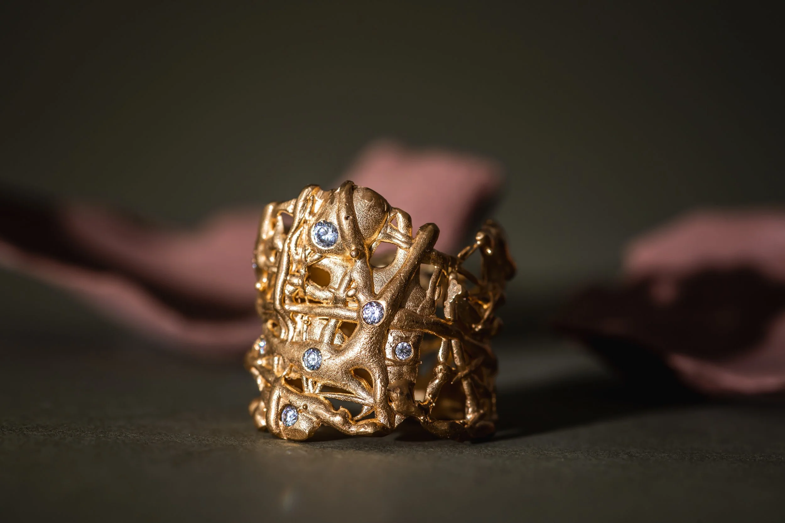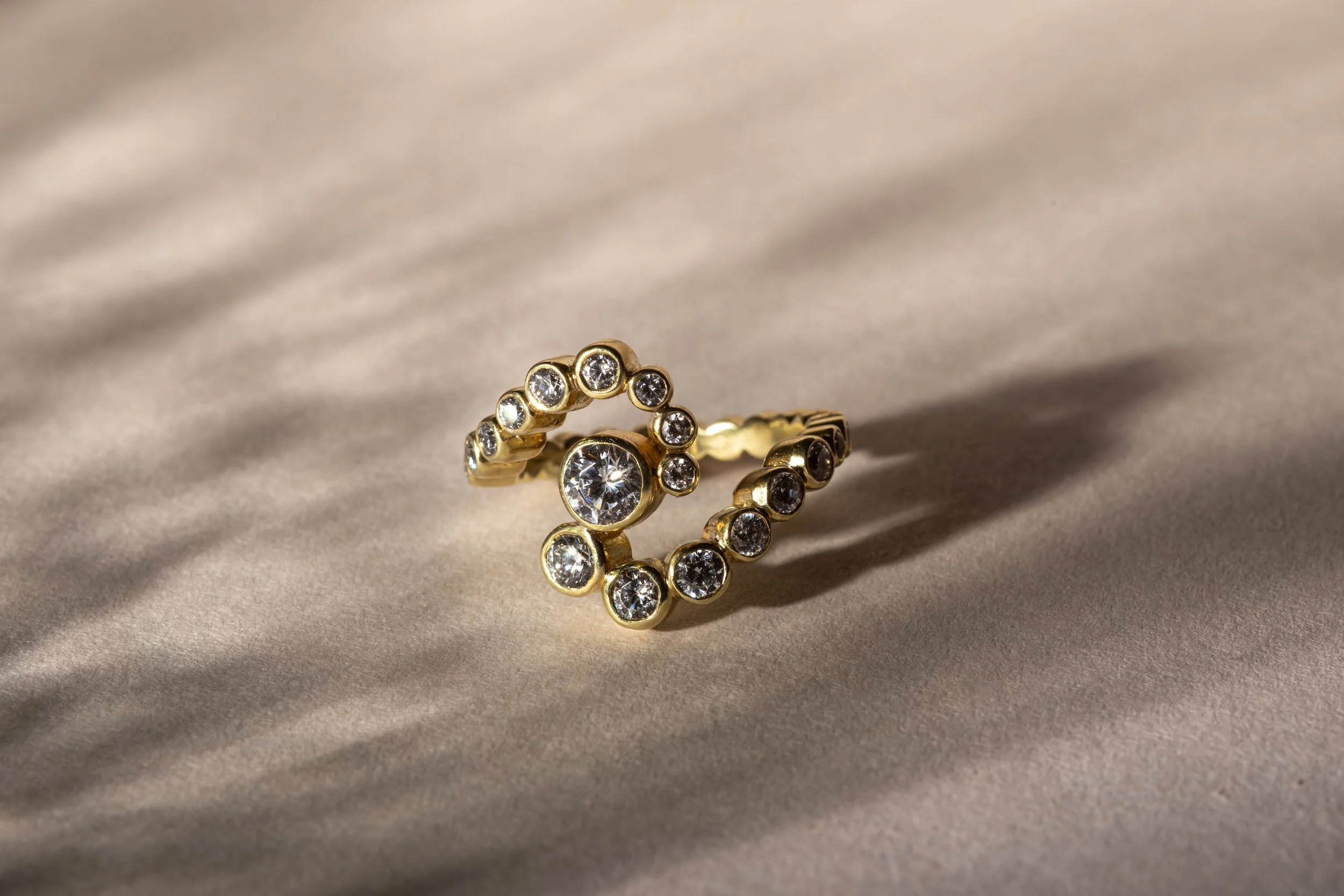 The narrative of their brand is infused with an environmental consciousness as the couple choose to work with only recycled or Fairtrade solid precious metals, crafting each piece to order. Their diamonds are sourced from Canada, conflict-free, responsibly mined and fully traceable these diamonds are Canadamark and GIA certified.